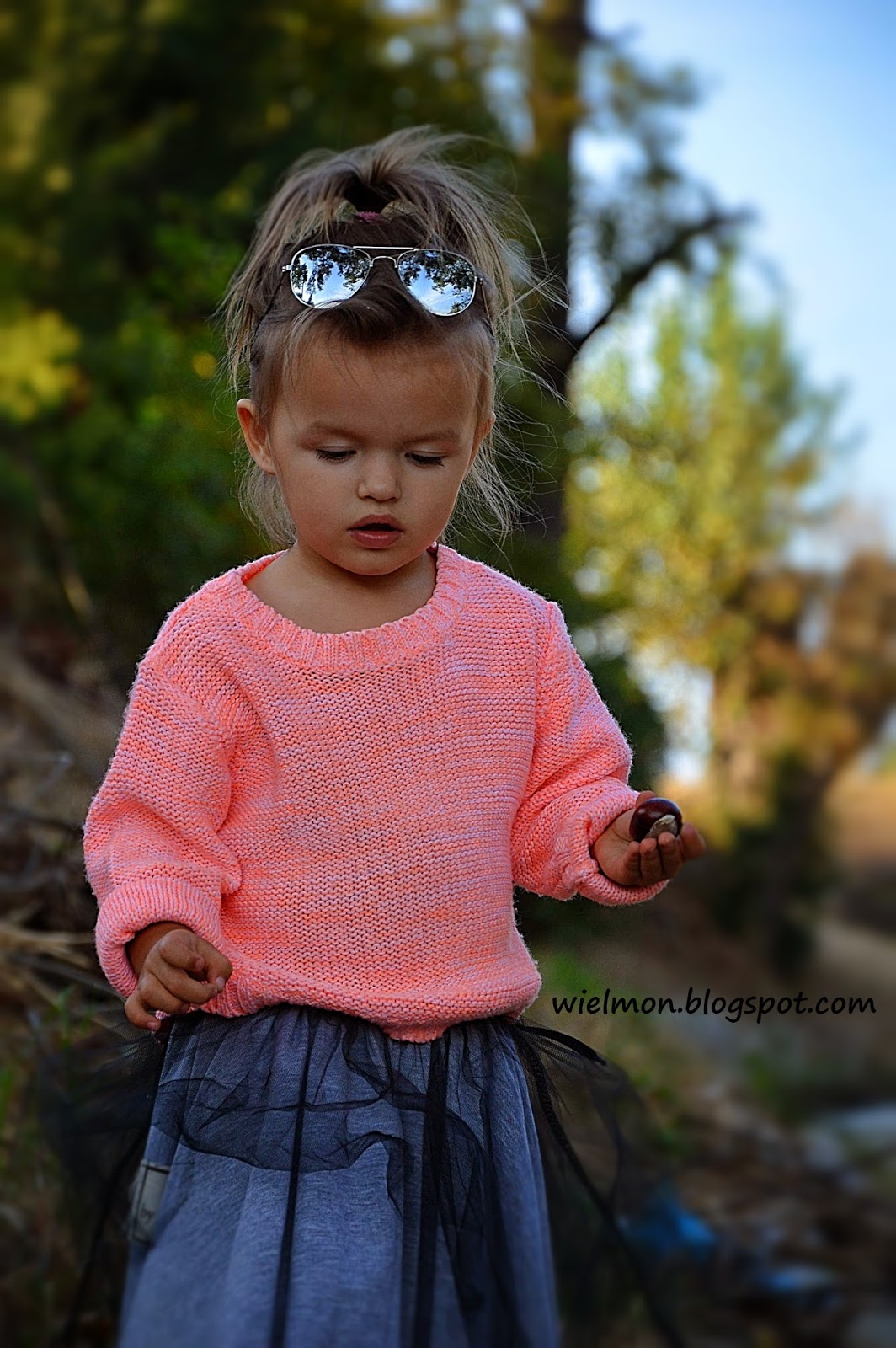 Dziś mamy dla Was trochę fotek Marysi, w tym pięknym wełnianym sweterku, który swoim kolorem nadał tak pięknego uroku zdjęciom, że nawet kasztany które miały być tematem przewodnim, zeszły na drugi plan 🙂