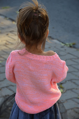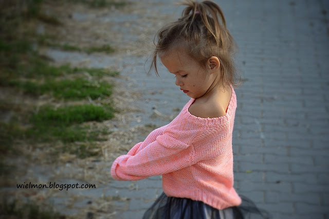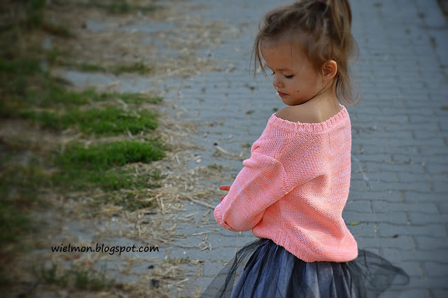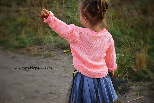 Kiedy patrzę na ten sweterek przypominają mi się dawne czasy. Czasy, kiedy to mama w długie jesienne i zimowe wieczory siedziała i robiła dla nas takie cuda na drutach. Pamiętam mój niebieski sweterek z bałwankiem, w którym chodziłam przez cały czas, a także ciepłe, kolorowe czapki i szaliki. Pamiętam też jak mama uczyła mnie jak się robi na drutach…