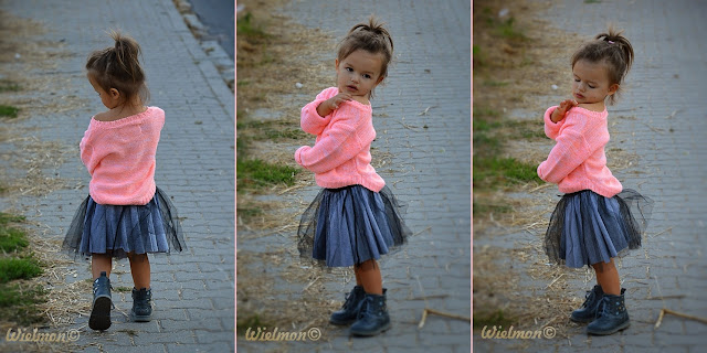 Ojej, jak ten kolor odbija się na tle ciemnej skóry małej, Marysia jest śliczna 🙂 Śliczna stylizacja