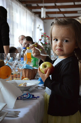 Jedną z uroczystości jaką świętowaliśmy, były chrzciny naszego czteromiesięcznego bobasa – Janka, który miał okazję włożyć swoją pierwszą muchę. Oczywiście, żeby było elegancko, nasz mały mężczyzna dostał również swój pierwszy garnitur i chyba przypadł tym do gustu swoim cioteczkom, gdyż nie szczędziły mu buziaków 🙂