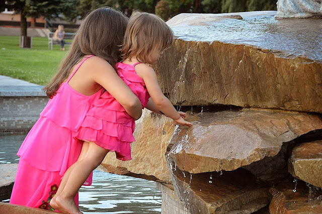 Przechodzisz obok fontanny ze swoją pociechą. Oczywiście nie ma opcji, żeby fontanna została nie zauważona. Zanim się obejrzysz twoja pociecha już próbuje zmoczyć nogi w wodzie.